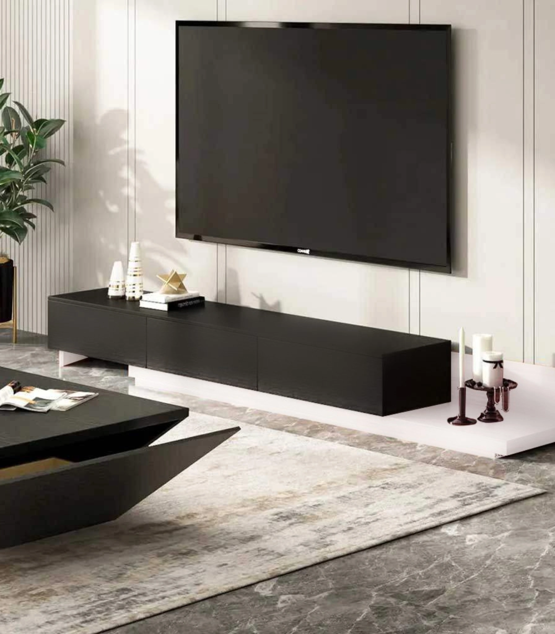 أضف لمسة من الأناقة والعملية إلى غرفة المعيشة مع وحدة التلفزيون الحديثة ذات الثلاثة أبواب. مصنوعة من MDF عالي الجودة مع تشطيب ميلامين، توفر متانة ومظهراً عصرياً أنيقاً. يستوعب السطح العلوي الواسع بسهولة التلفزيونات الكبيرة، بينما توفر الأبواب الثلاثة تخزيناً مخفياً لأجهزة الوسائط، والإكسسوارات، والاحتياجات اليومية، للحفاظ على مساحة مرتبة وخالية من الفوضى.