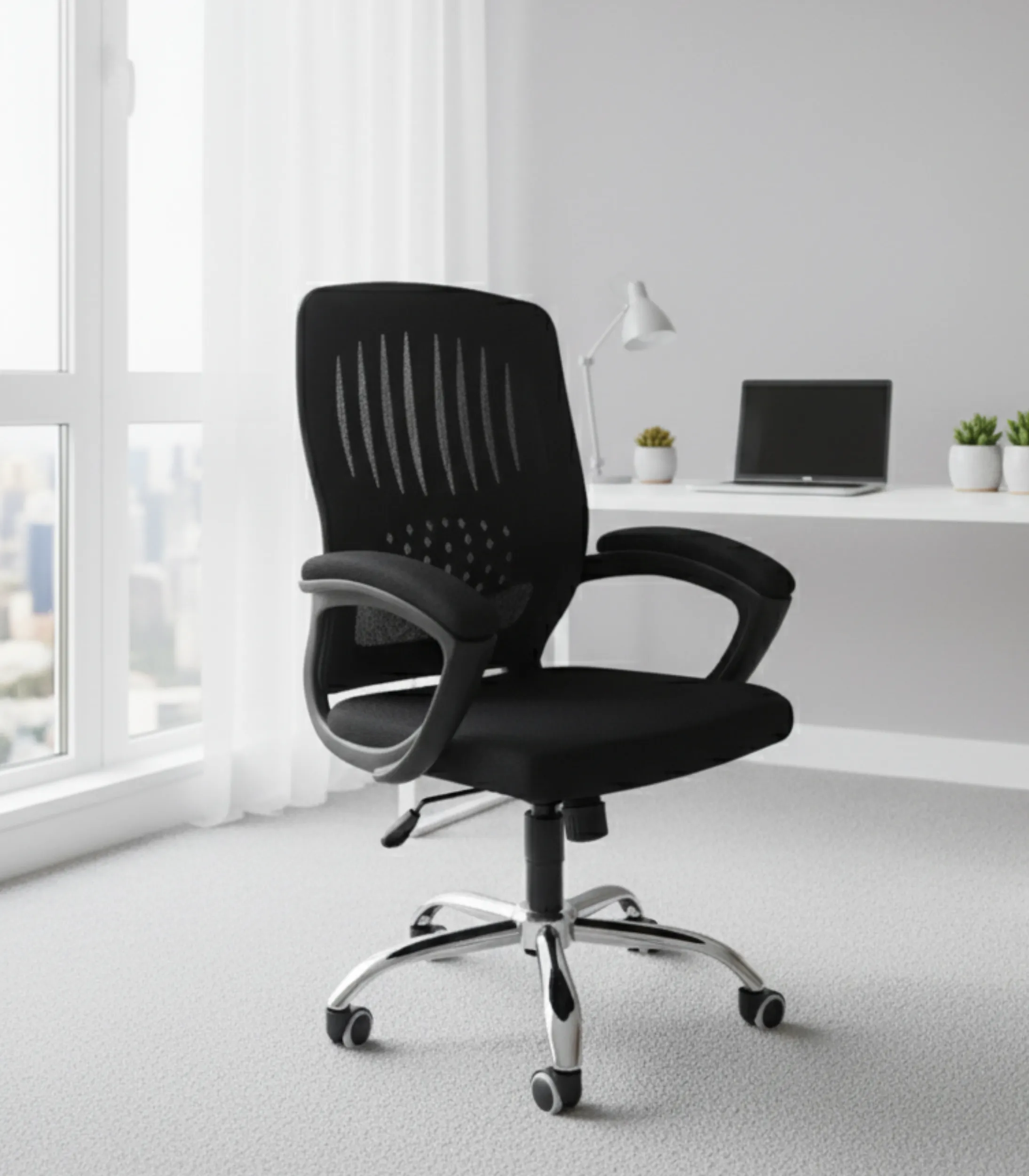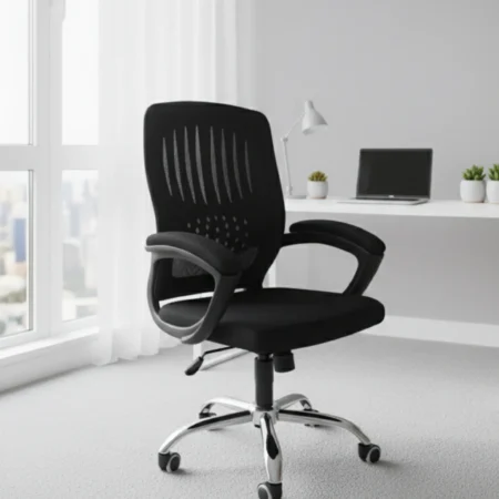 كرسي مكتب شبكي أسود – بلاستيك ومعدن مريح