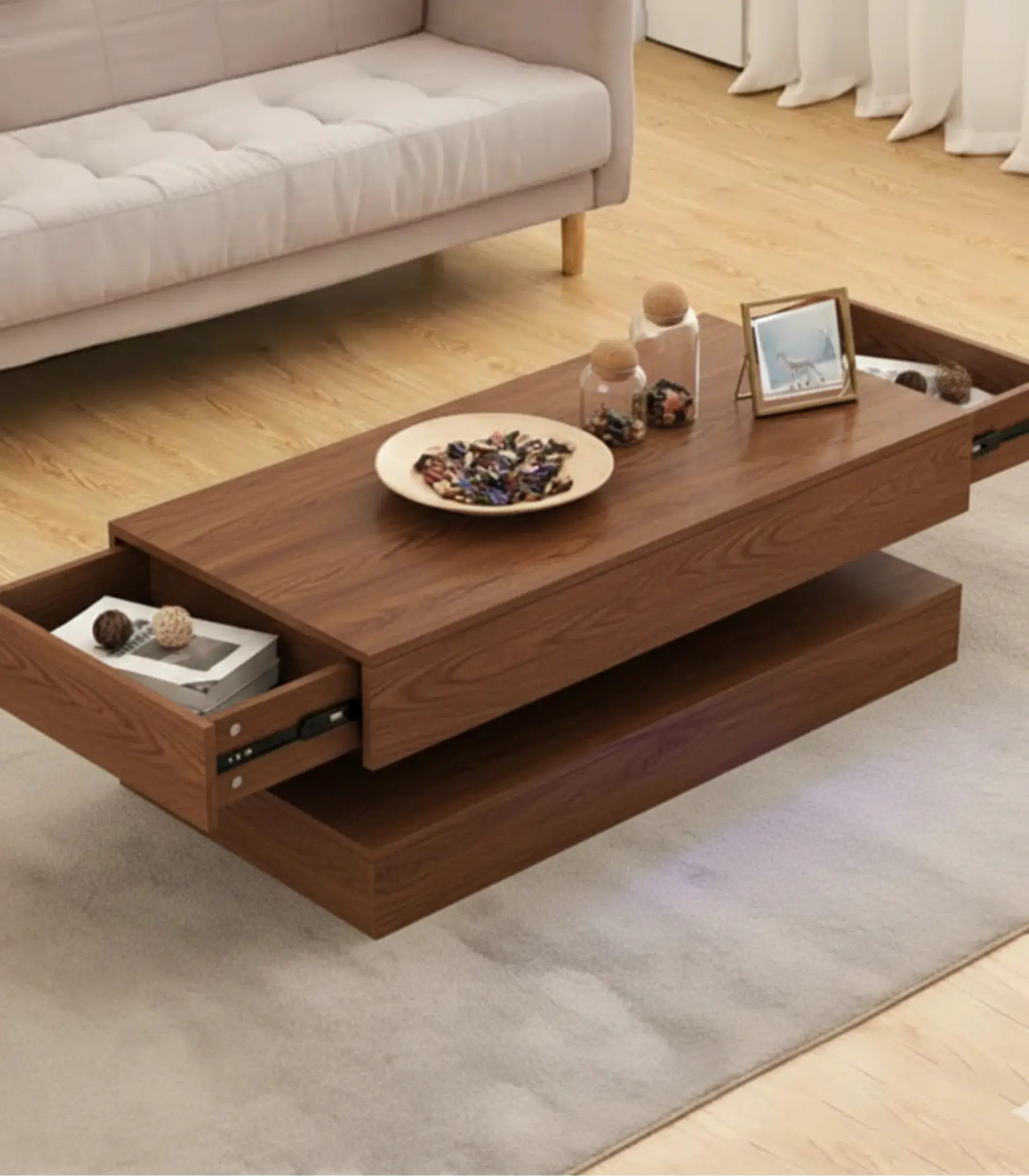 استغل مساحة معيشتك إلى أقصى حد مع طاولة القهوة “سلايد” (Slide)، وهي طاولة قهوة ذكية تتميز بآليات أدراج مدمجة لتوفير مساحة تخزين خفية. تُعد هذه القطعة الأنيقة والعملية الحل العصري المثالي لمنزل خالٍ من الفوضى وأكثر أناقة.