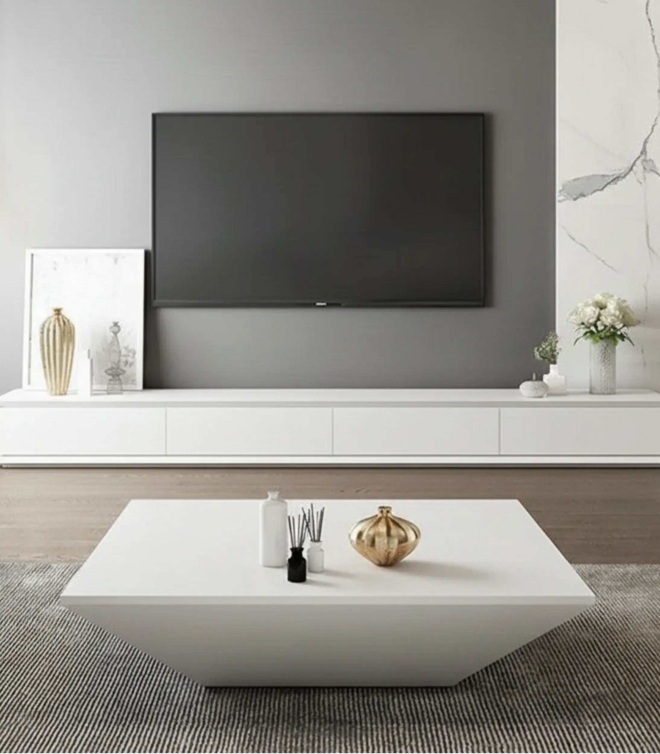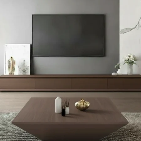 صُمم طقم طاولة القهوة ووحدة التلفاز Vigo لمن يبحثون عن مظهر نظيف وفاخر دون التنازل عن الوظيفة العملية. يشكل هذا الثنائي المتناسق من وحدة التلفاز وطاولة القهوة نقطة ارتكاز مثالية لغرفة الترفيه الخاصة بك، حيث يخلق تأثيرًا بصريًا أنيقًا “عائمًا” بفضل تصميم قاعدته المدببة الفريد.