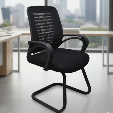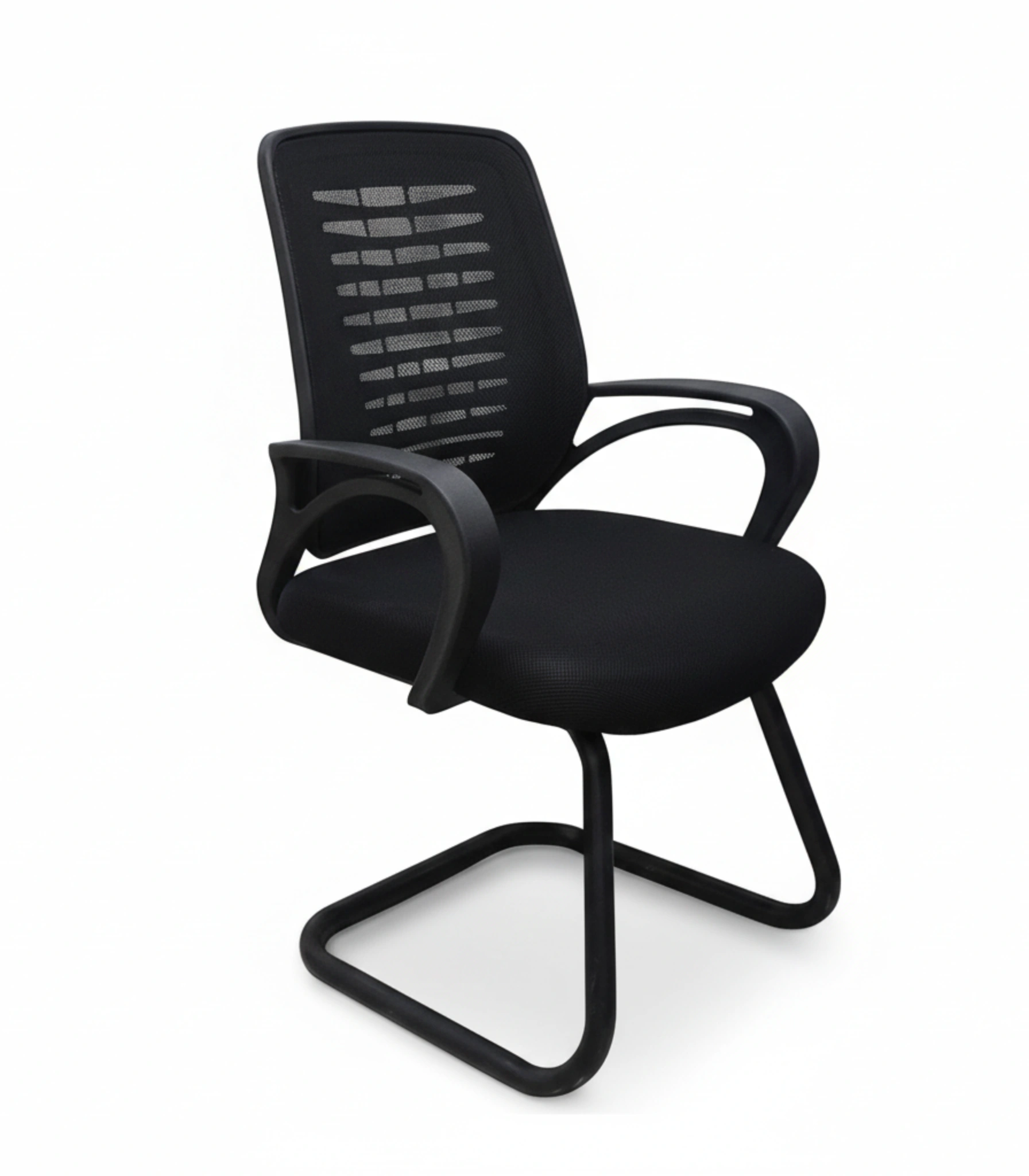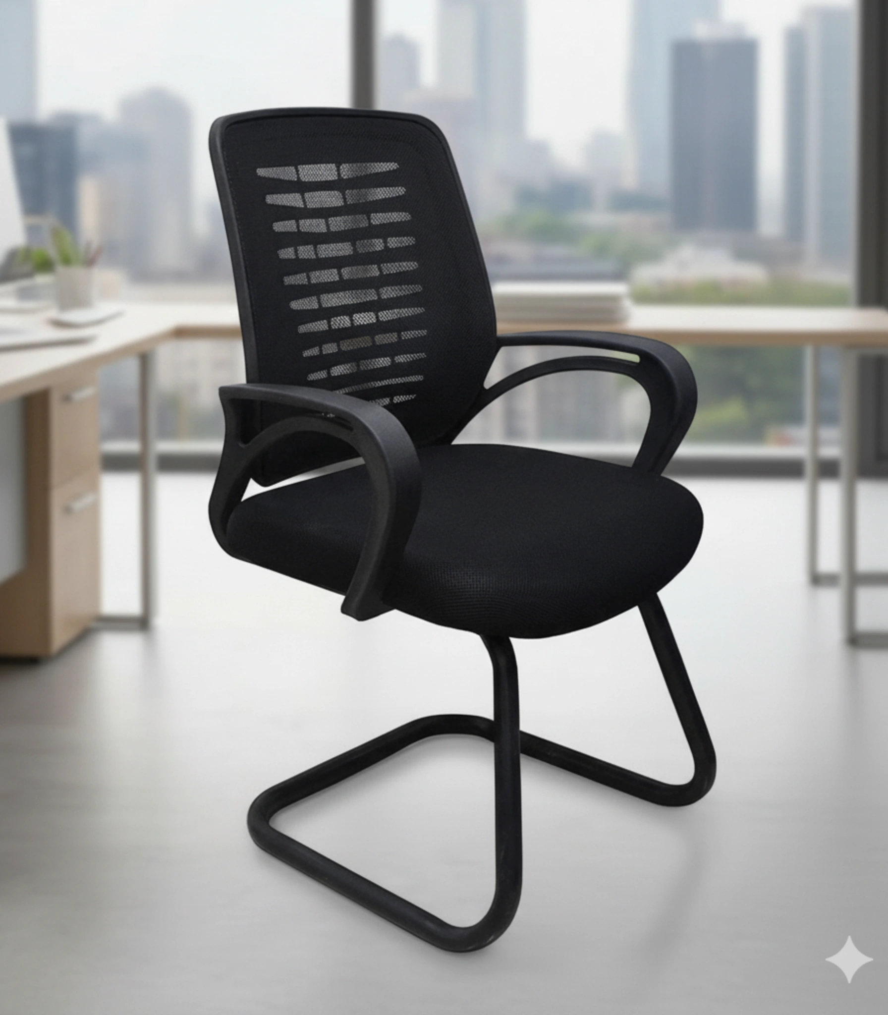 كرسي مكتب شبكي أسود إرغونومي بهيكل متين من البلاستيك والمعدن، وآلية صينية سلسة، وتصميم عصري. صُمم للراحة والاستخدام اليومي.