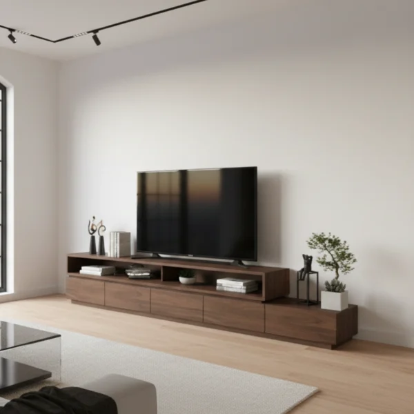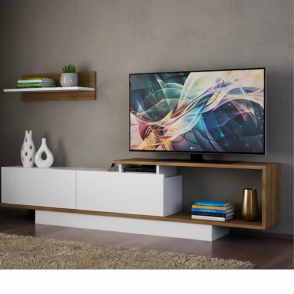 introduce effortless style and practicality into your home with the Cavira™ TV Unit. This piece embodies modern minimalism with its clean lines, handle-less facade, and a sophisticated light wood (Oak/Beech effect) finish. The slightly elevated “floating” base design adds a contemporary edge, making it an instant focal point among modern TV units.