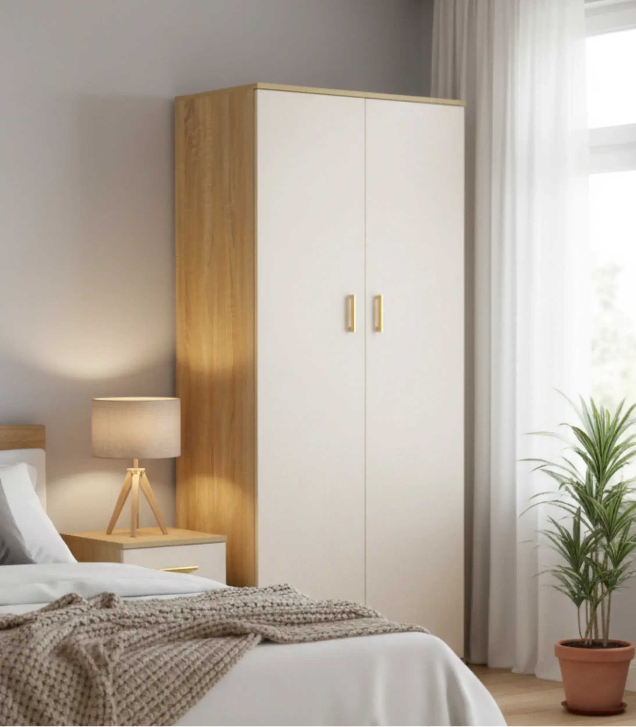 Available in two stylish combinations Sleek Black & White or Warm Beige & Wood the Kiva features a clean-lined silhouette and elegant vertical handles. Whether you are furnishing a small apartment or adding extra storage to a master suite, the Kiva wardrobe provides a refined look that maximizes your vertical space without overwhelming the room.