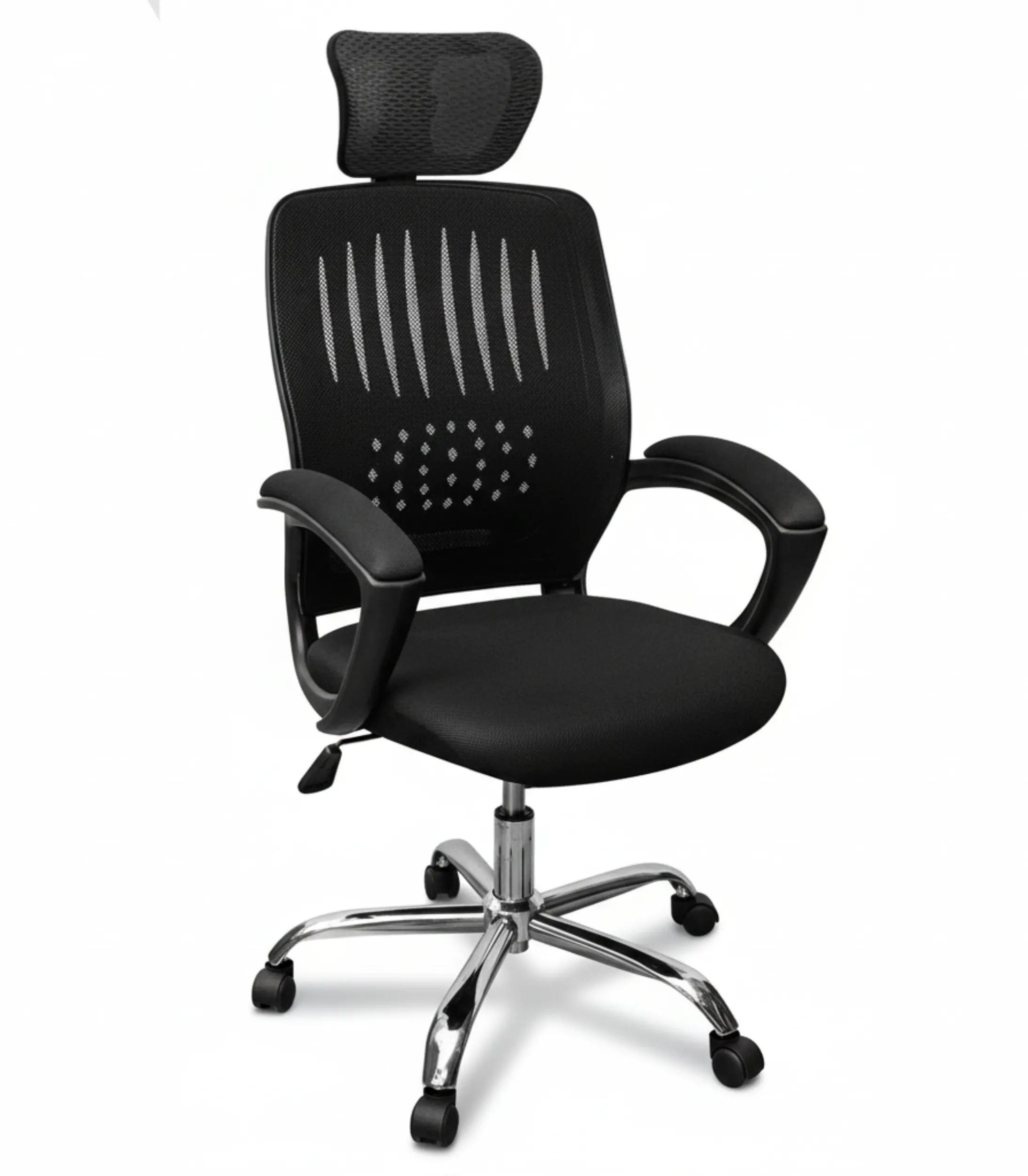 A durable office chair made with compressed foam and premium leather upholstery, designed for lasting comfort and everyday use.