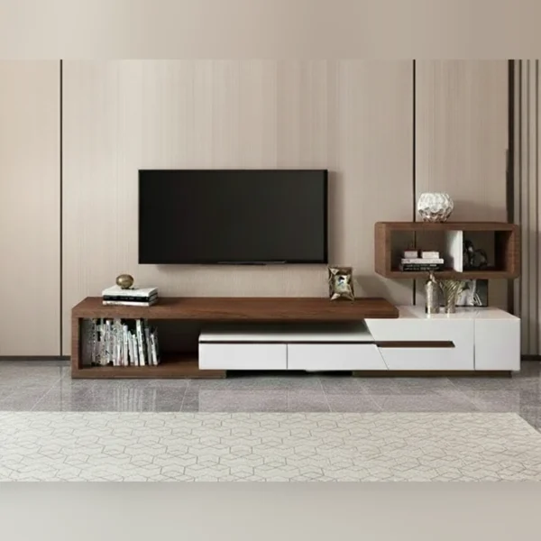 Stylish TV unit with 3 doors, crafted from durable MDF and melamine in a multicolor finish. Fully assembled and ready to use, made in Egypt.