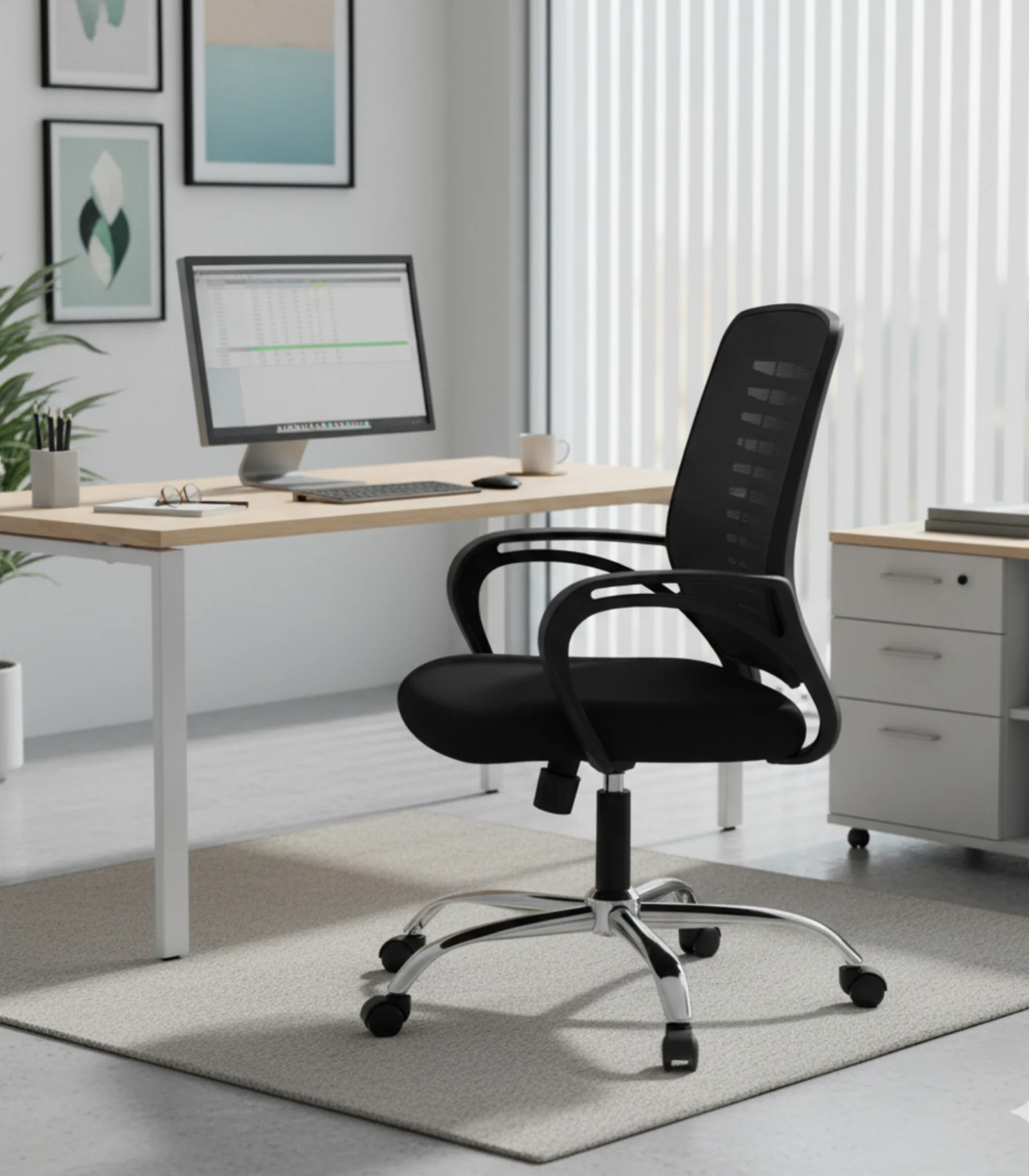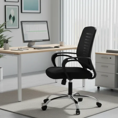 Ergonomic Black Mesh Office Chair – Adjustable Height, Metal Frame