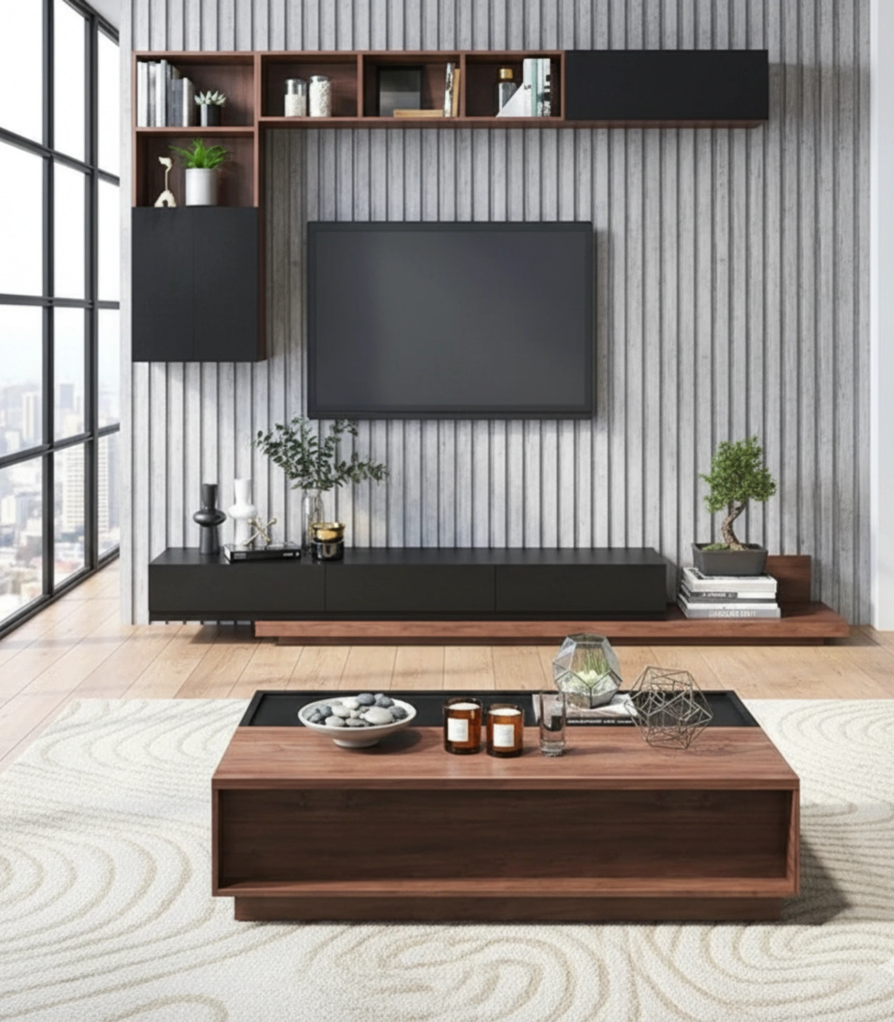 Modern TV Unit & Coffee Table Set – MDF with HPL Finish, 240 cm
