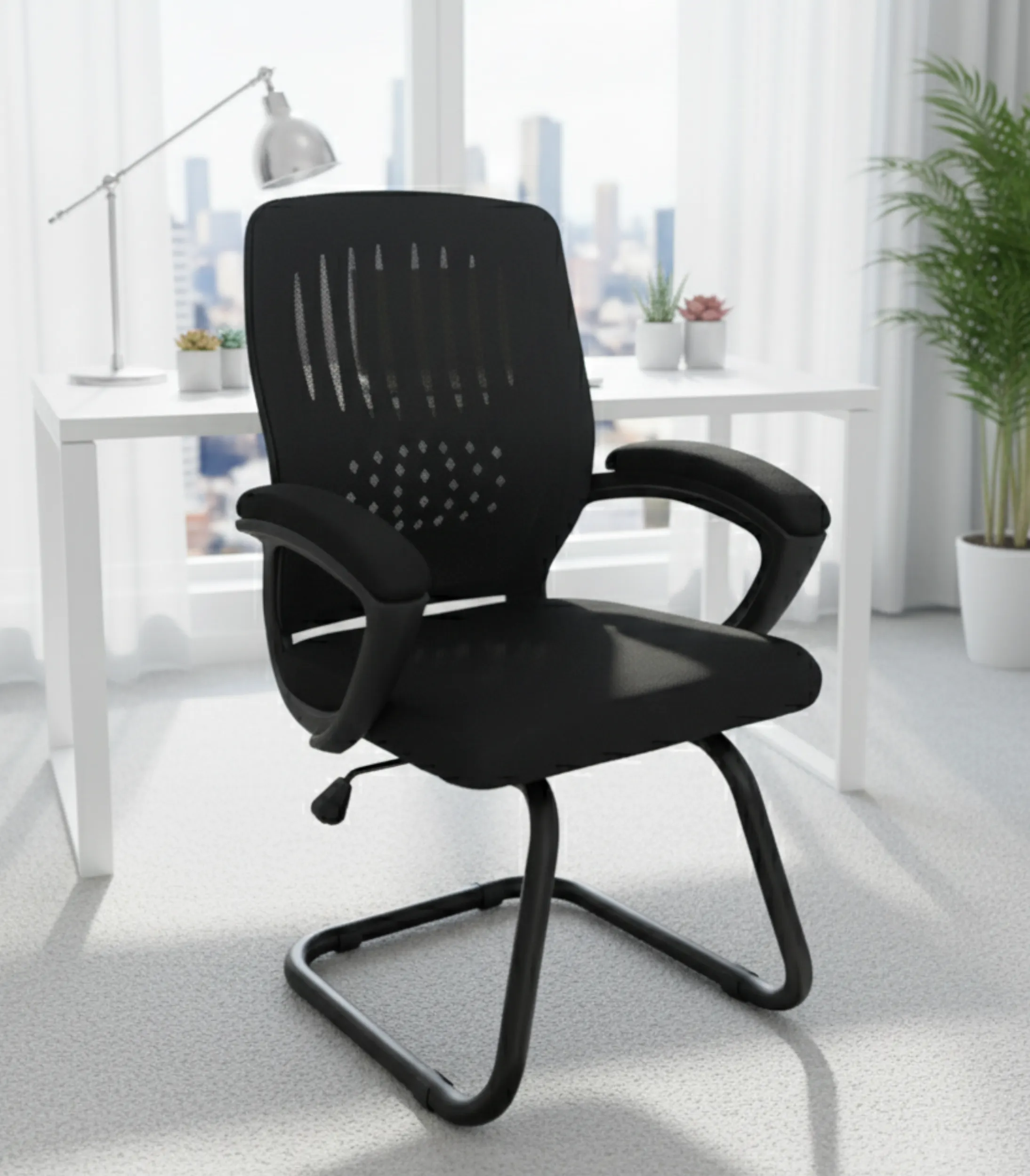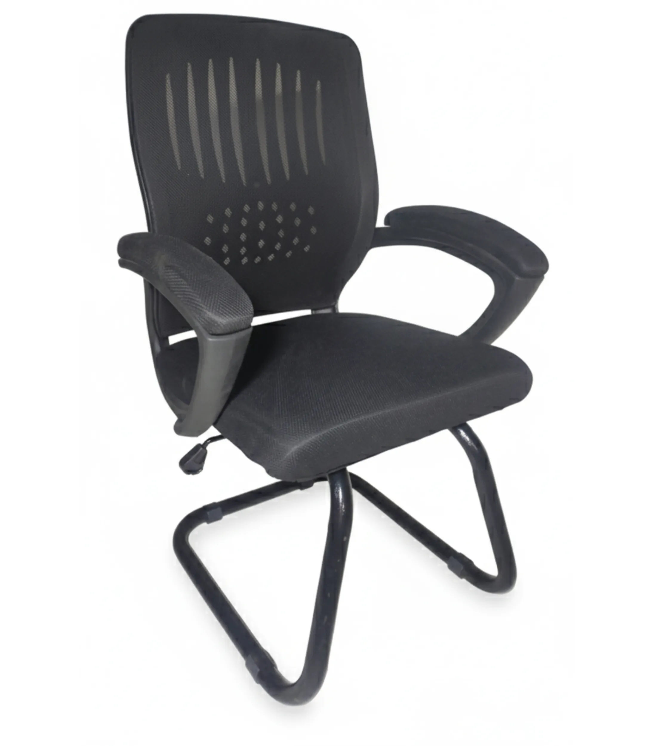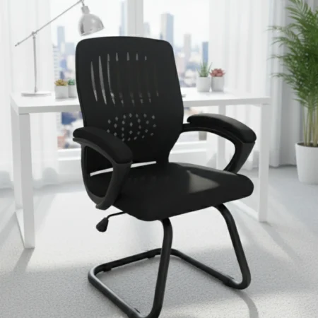 The Plastic and Metal Office Chair – Black Mesh Comfort Series is designed to combine style, durability, and ergonomic support for your workspace. Upholstered in breathable mesh fabric and cushioned with high-density sponge, this chair provides long-lasting comfort while ensuring proper airflow during extended sitting hours. The foam-coated plastic armrests add an extra layer of support, and the solid metal legs guarantee strength and stability. With its sleek black finish, compact size, and ergonomic design, it’s perfect for home offices, study spaces, and professional work environments. Plus, it comes with a 1-year warranty, giving you confidence in both comfort and quality.