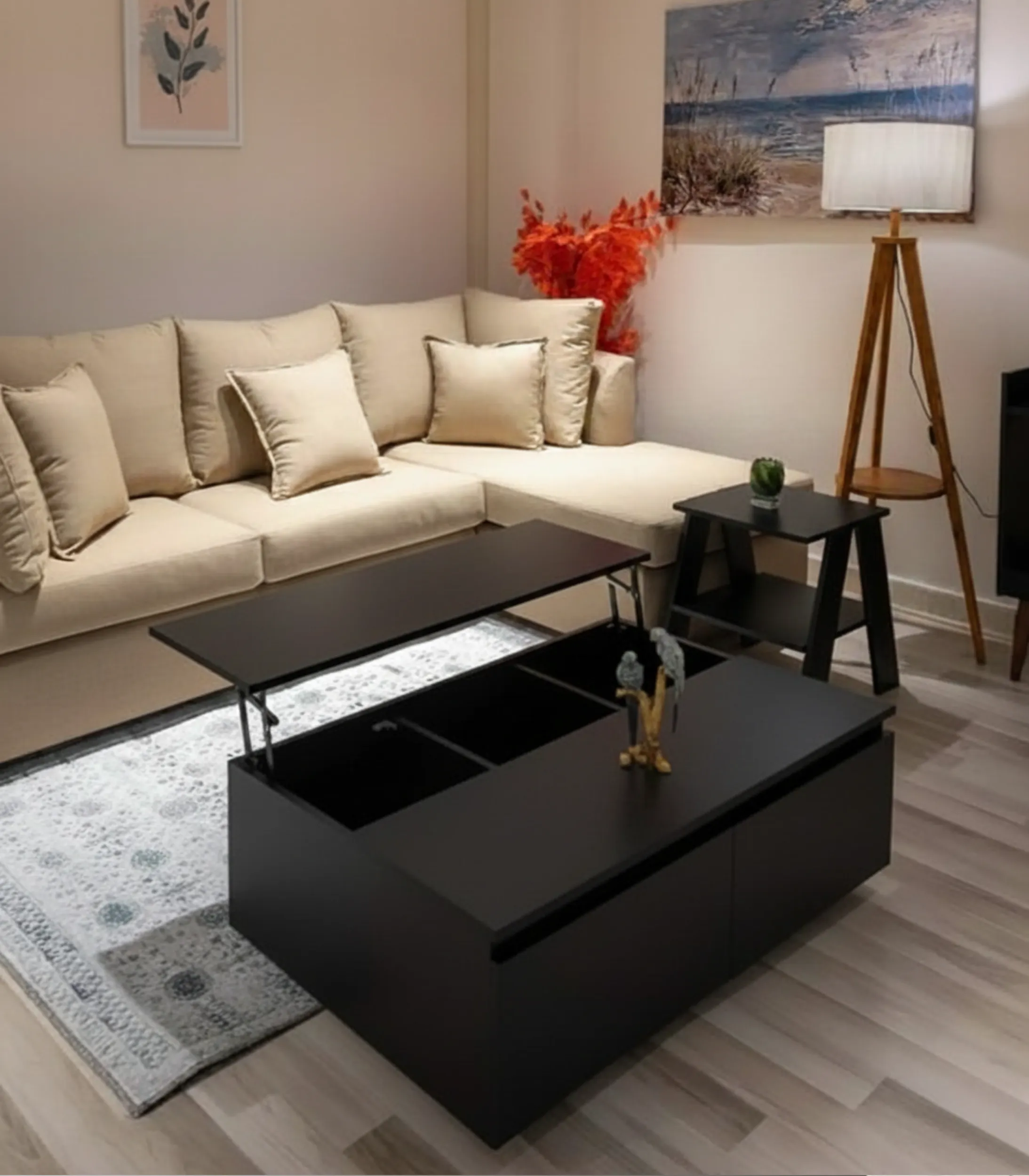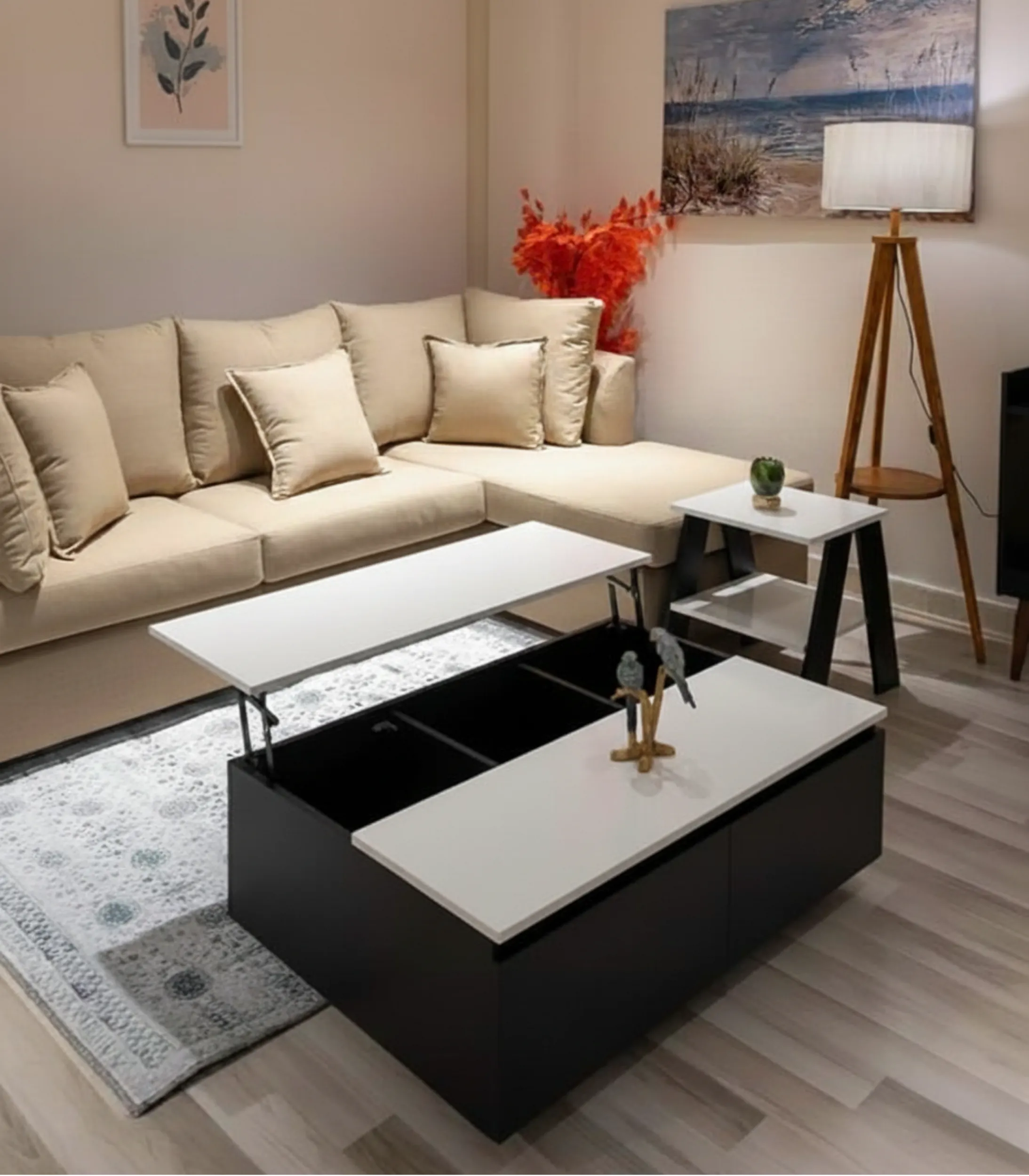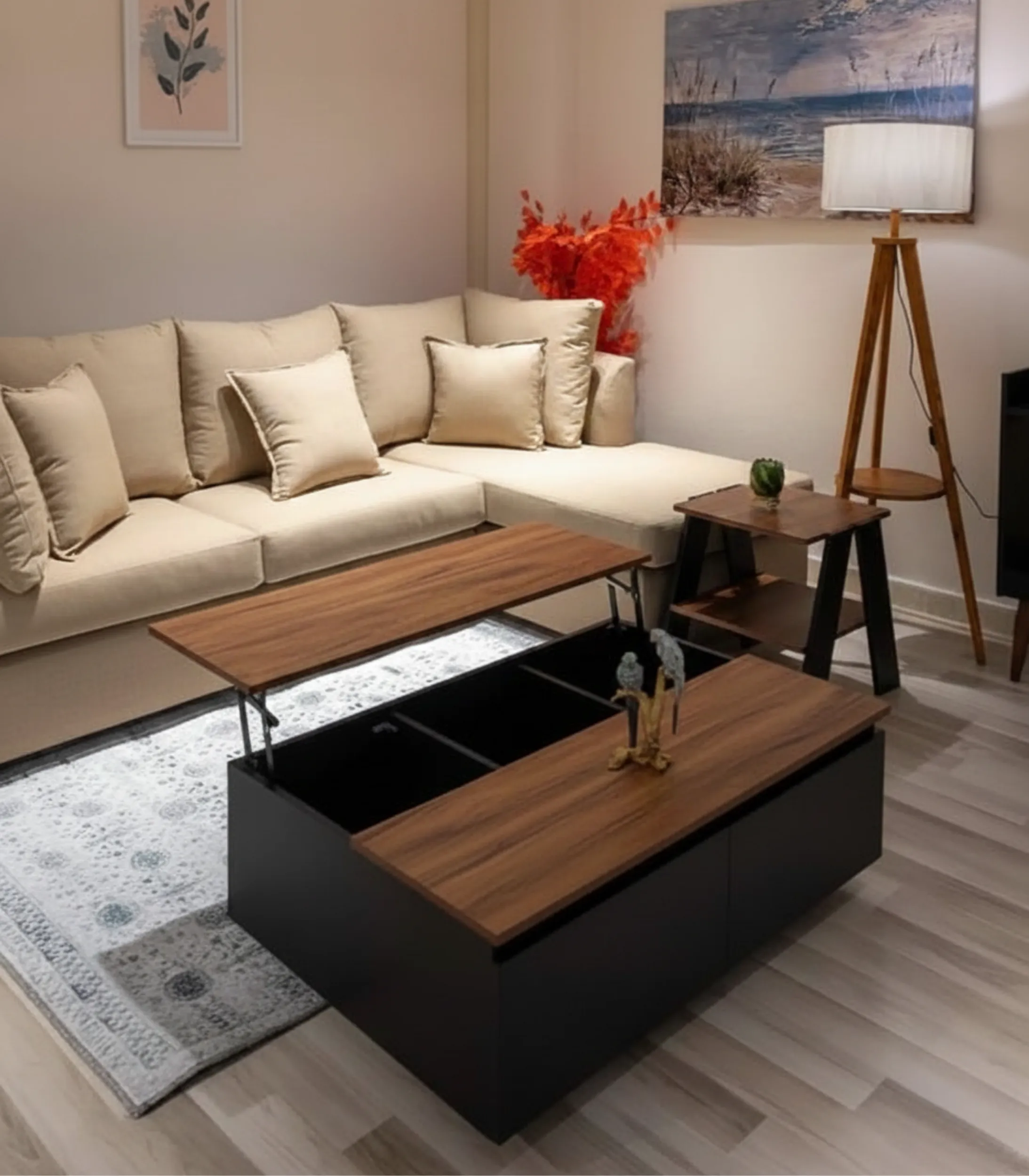 Elevate your home lounging experience with a home furniture duo designed for ultimate versatility. The Square-Lift Storage Coffee Table is not just a centerpiece; it is a high-functioning workstation and storage hub. Equipped with a specialized lift-top mechanism, the tabletop smoothly raises toward you, creating an ergonomic surface for dining or working from the sofa while revealing a spacious hidden compartment for blankets, laptops, and essentials.