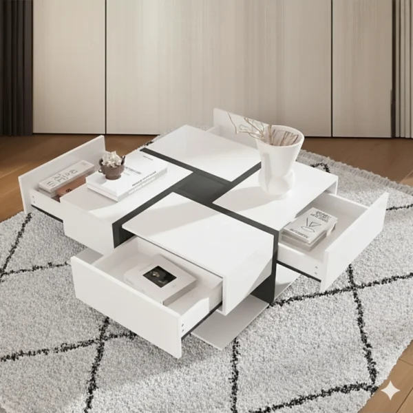 Available in three versatile finishes Sleek Black, Nordic White, and Rich Brown this table features a robust plinth base that gives it a solid, architectural presence. Crafted from durable materials with a scratch-resistant finish, it is designed to handle the pace of a busy household while looking like a designer statement piece. Whether you are decorating a small apartment or a large family room, this modern coffee table provides the clean lines and smart storage you need.