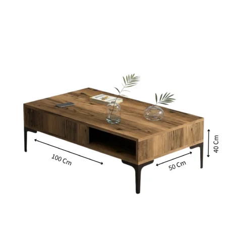 Center your living room with the balanced elegance of The Grove Table, a standout piece of home furniture. This 100cm coffee table features a perfectly symmetric design, combining a central storage drawer with dual-access open shelving for a clean, organized look.