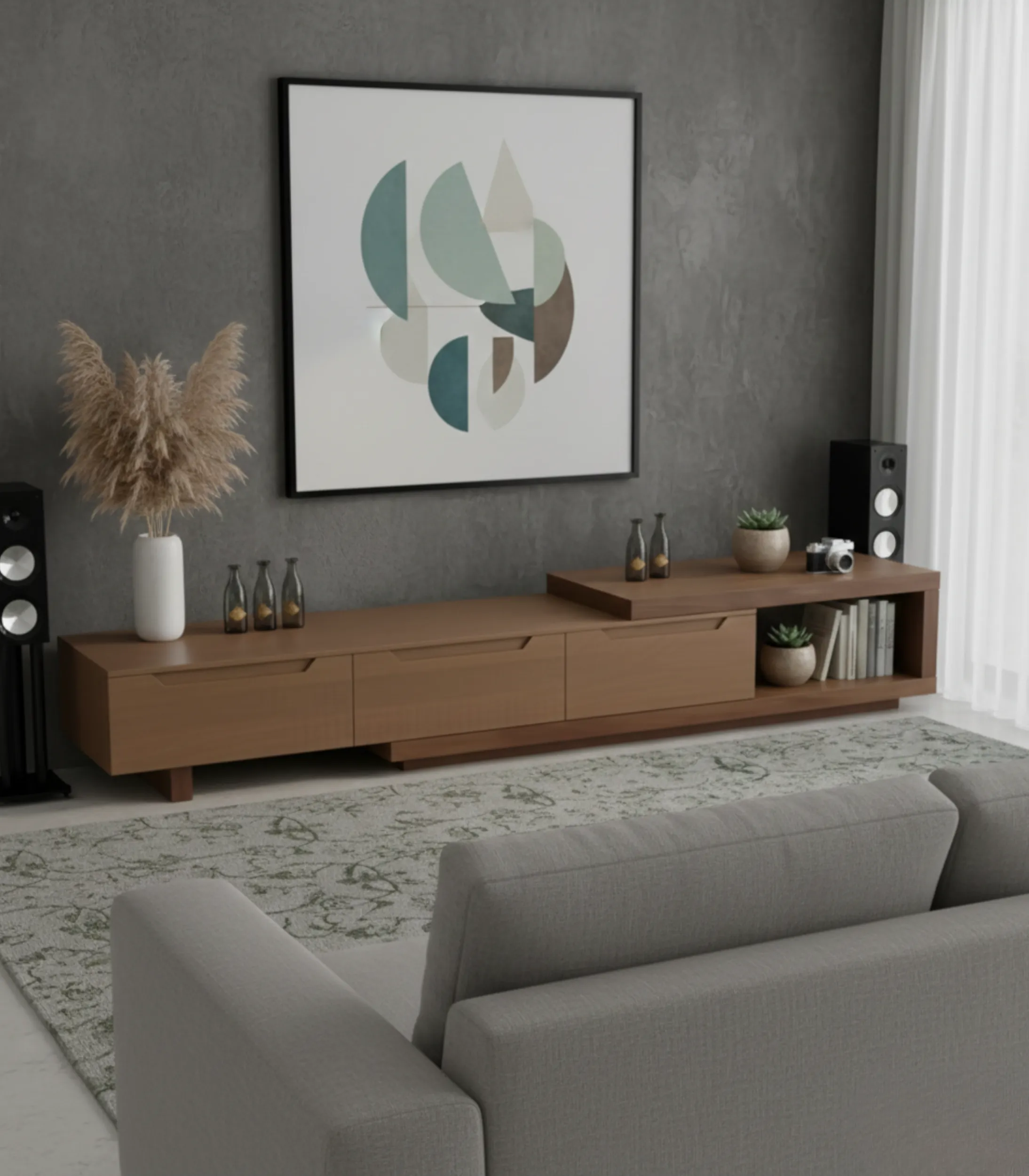 The Layered Axis TV Unit is the “real-world” solution for homeowners who want their furniture to feel like a custom-built installation. As a standout in contemporary home furniture, this 180cm TV unit features a unique overlapping design where the top surface appears to slide across the storage base, creating a dynamic sense of movement and balance.