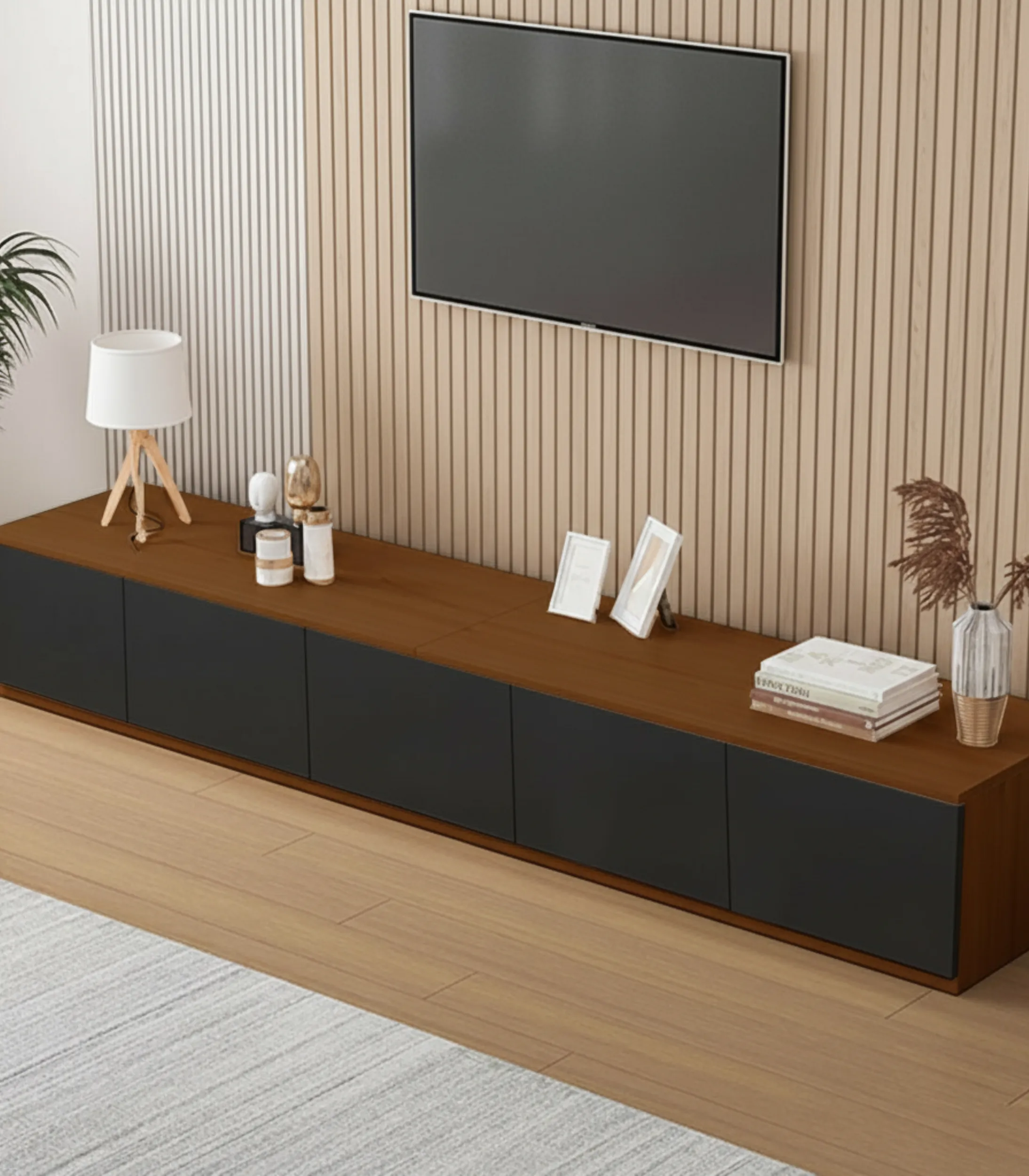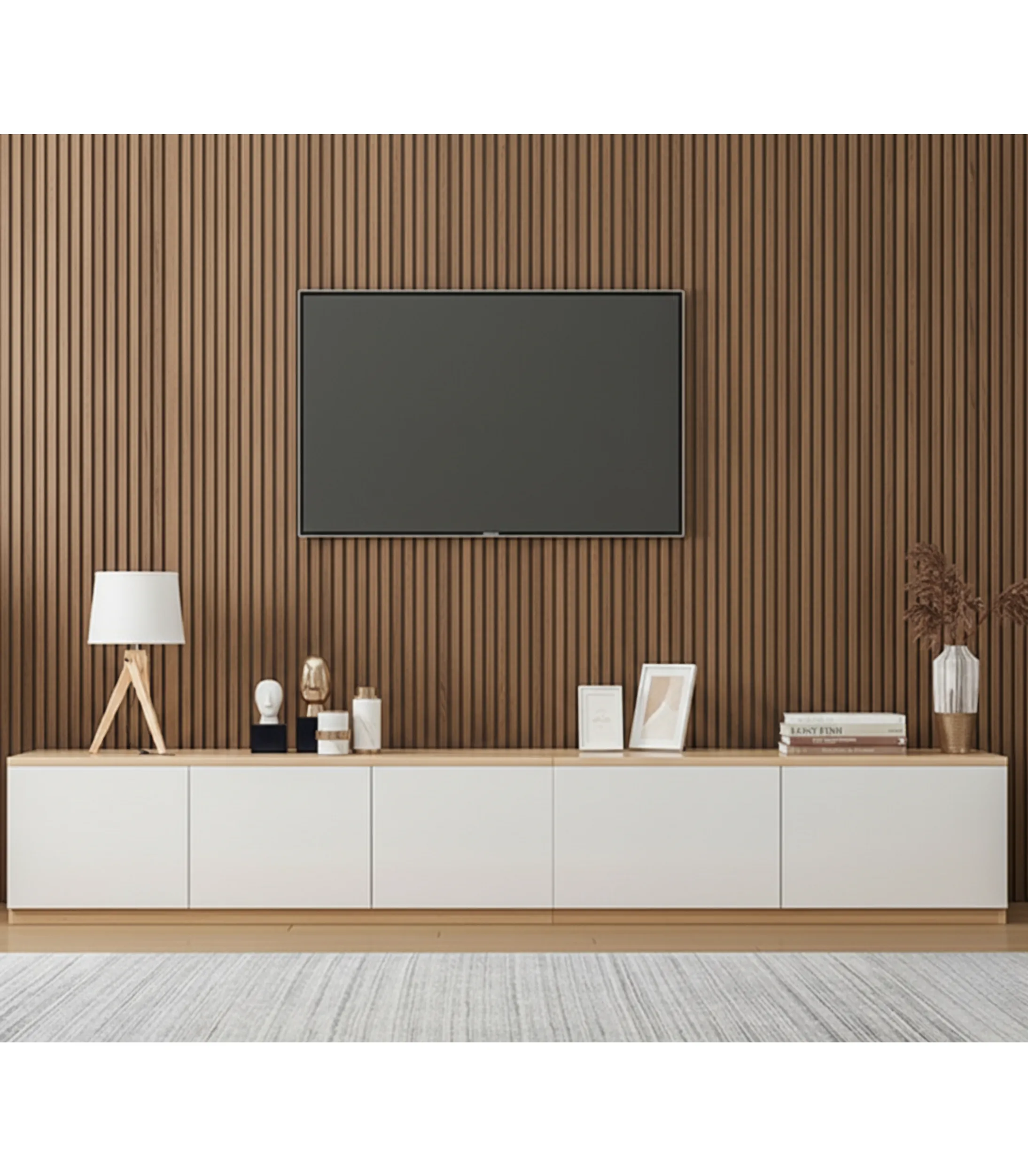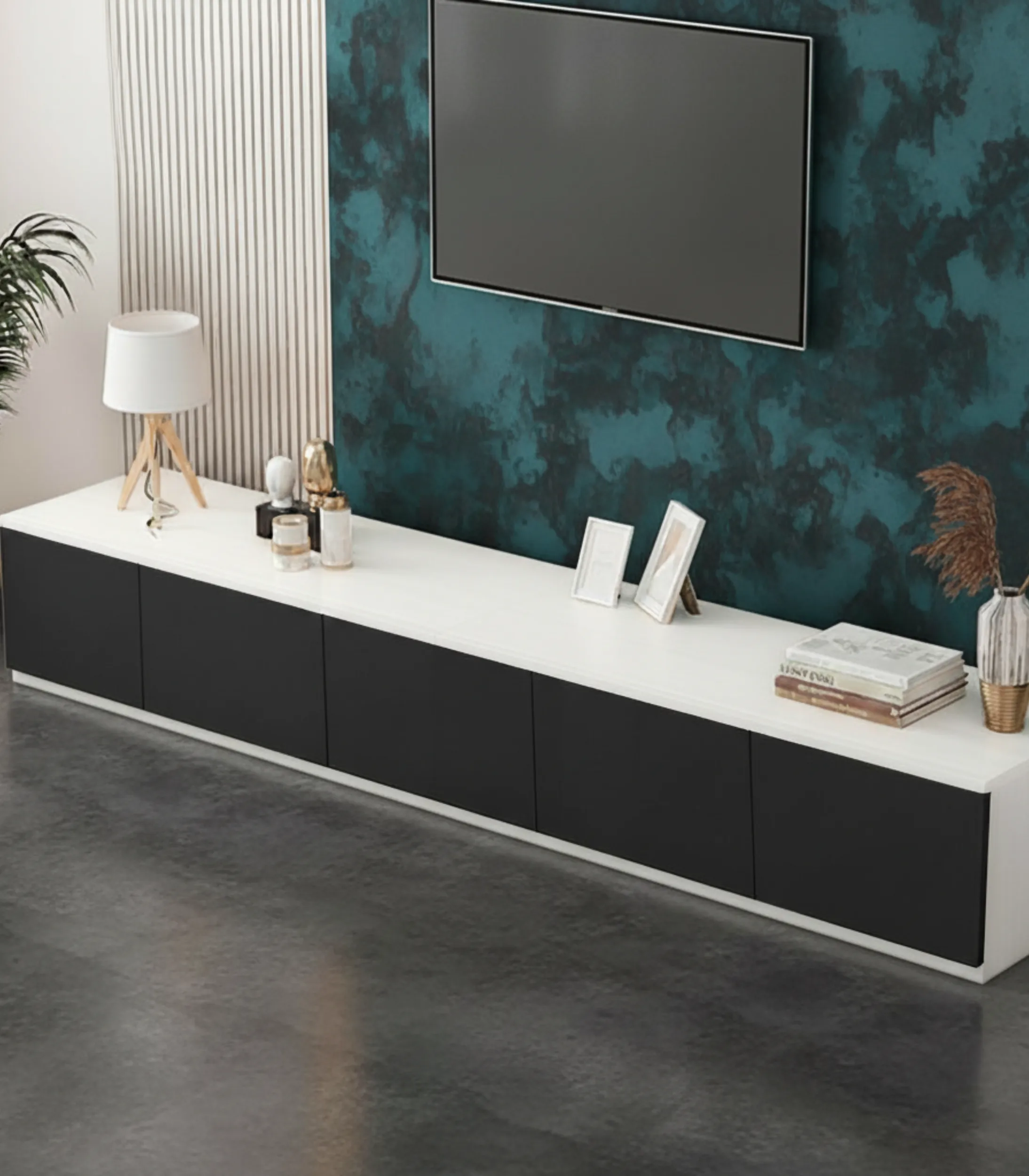 Elevate your living room with the Velora™ TV Unit. This sleek, contemporary media console offers massive storage with five spacious doors, perfect for keeping your space tidy. An essential and stylish piece among modern TV units for any home.