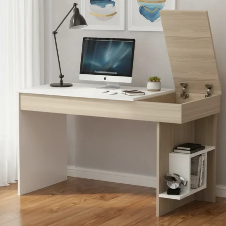 This innovative home office desk features a clever flip-top design for hidden storage and a modern two-tone finish. It’s the ultimate combination of style and function, making it an ideal study desk for students and a sleek modern desk for any workspace. Upgrade your home office furniture with this smart solution.